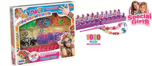 Elastici Colorati in Gomma con 1000 Elastici Colorati 24 Gancetti e 2 Telai