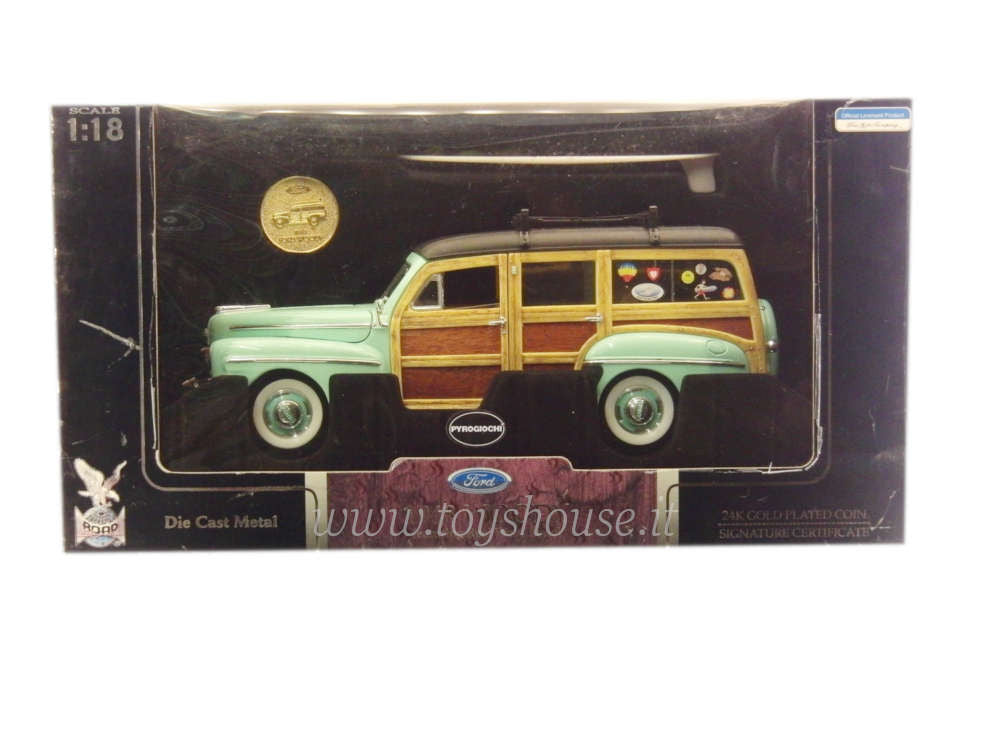 Yat Ming item number 20028 in 1:18 scale, 1948 Ford Woody in turquoise and wood color.