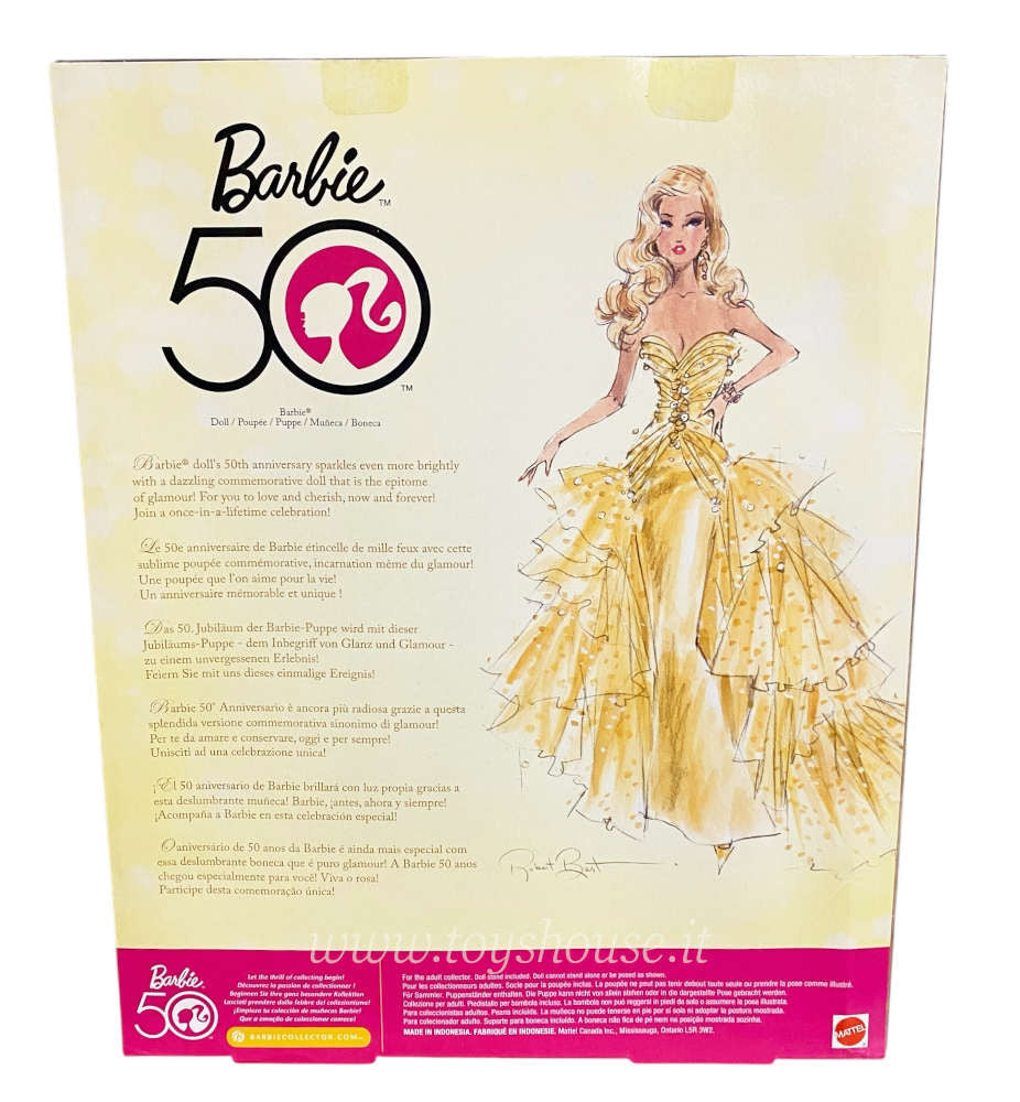 Now is your chance to be part of a once-in-a-lifetime celebration! The 50th anniversary of Barbie® doll shines even brighter with a stunning commemorative doll. The epitome of glamour, this radiant doll sparkles beautifully. Barbie® 50th Anniversary Doll: Love and cherish, now and forever!