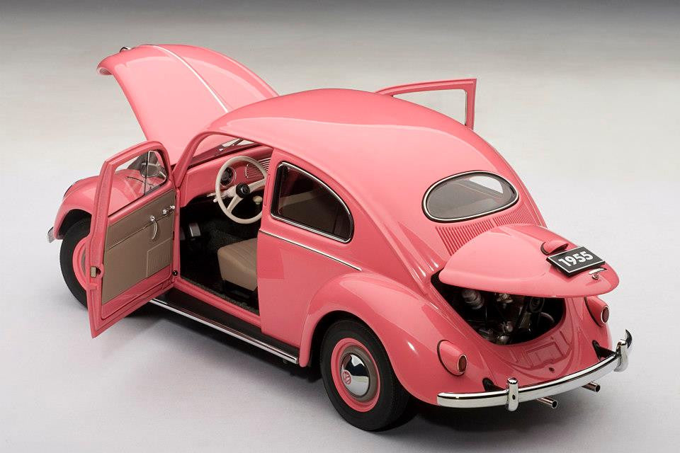 AUTOart article 79775 scale 1:18 Volkswagen Beetle Kafer 1200 Limousine 1955 (Lim. Ed. 1.000 pcs) - Pink.