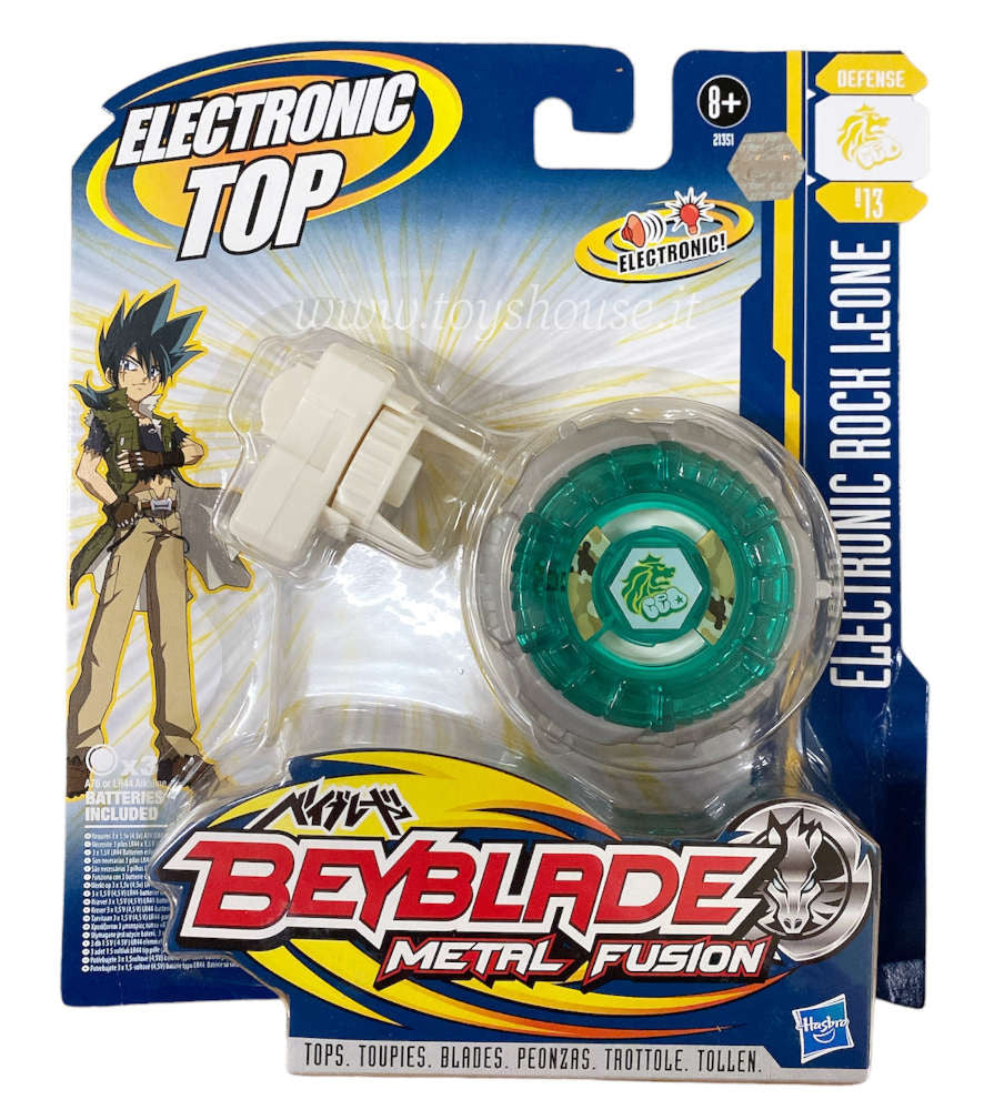 Beyblade Metal Fusion Electronic Top Electronic Rock Leone 21315 electronic with lights and sounds. Requires batteries (included). Contains small parts, not suitable for children under 3 years.