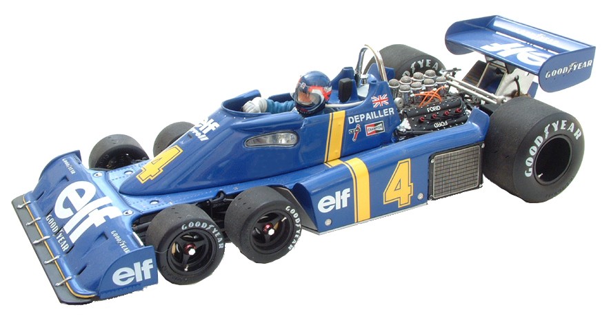 Exoto Box Set with the 1976 Ford Tyrrell Type P34 No.4. Driver Patrick Depailler. Second at the Swedish GP. GPC97042.