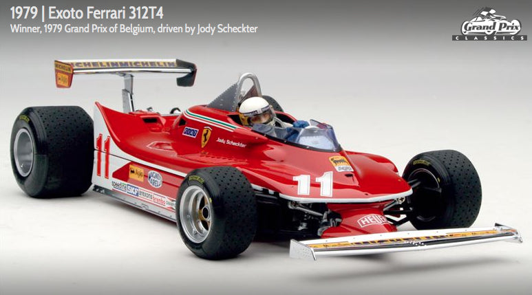 Exoto Box Set with the 1979 Ferrari 312T4 #11. Driver Jody Scheckter. Winner of the Belgian GP. GPC97072.