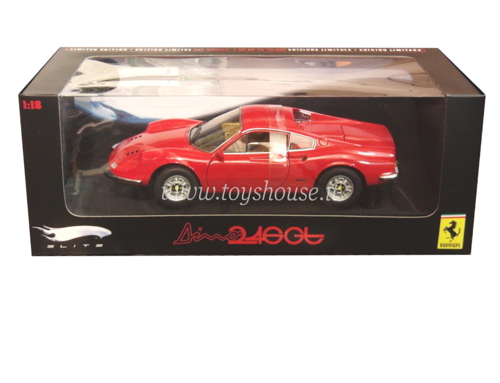 Hot Wheels item N2044 Limited Edition 1 of 10,000 in 1:18 scale Elite Series, Ferrari Dino 246 GT, color red.